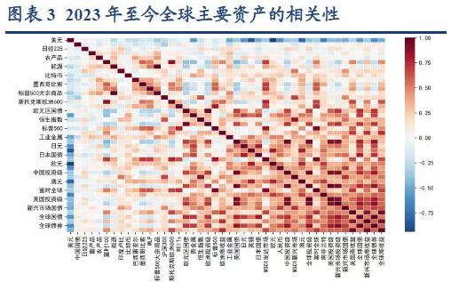 需要提醒的是,大类资产的之间的相关系数并非一成不变的,而是具有显著的阶段性特征。以黄金和原油为例,国际金价和国际油价都能够敏感的反应全球经济的未来走向,前者在强烈的经济衰退预期中走强,后者却会在强烈的经济复苏预期中走强,两者呈现出长期负相关的特征。但是,2022年2月份俄乌冲突爆发之后,黄金和原油的价格出现几个月的同涨同跌特征,因为俄乌冲突既刺激了避险情绪又减少了石油供应,对于黄金和石油均为利多影响。直至2022年三季度,黄金和原油的共振性才消失,取而代之的是长周期的负相关特性。由于阶段性相关系数的存在,投资者就需要每隔一段时间对投资组合进行调整,以防止本来相互独立的大类资产出现阶段性的价格共振。