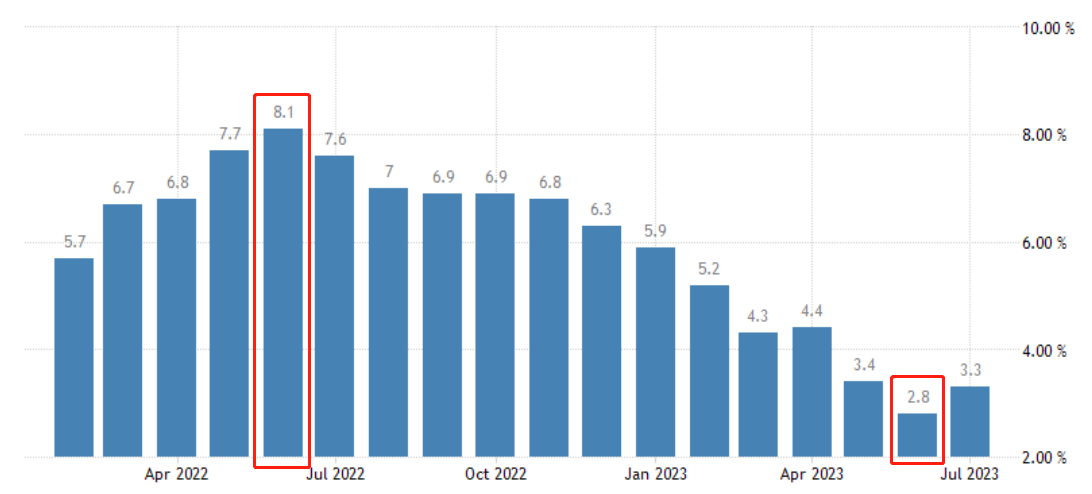 本周二12:30,澳洲联储将公布利率决议结果,当前现金利率4.1%,预计决议后将维持不变,原因是澳大利亚的高通胀问题已经显著缓解。7月CPI年率4.9%,低于前值5.4%,已经连续三个月下降,相比2022年12月份峰值水平8.4%已经减少3个百分点。澳洲联储长期通胀调控目标范围2%~3%,7月数据明显高于该目标,但由于紧缩货币政策的效果具有滞后性,所以澳洲联储停止加息后CPI仍有可能继续下行。需要提醒的是,澳洲联储现任主席洛威将于9月中旬届满,副主席布洛克将接任。8月末,布洛克曾公开发表讲话称:澳大利亚的通胀仍然太高,她上任后的首要任务是继续降低通胀率。所以,本周二的澳洲联储利率决议仍有较小概率出现超预期加息动作。