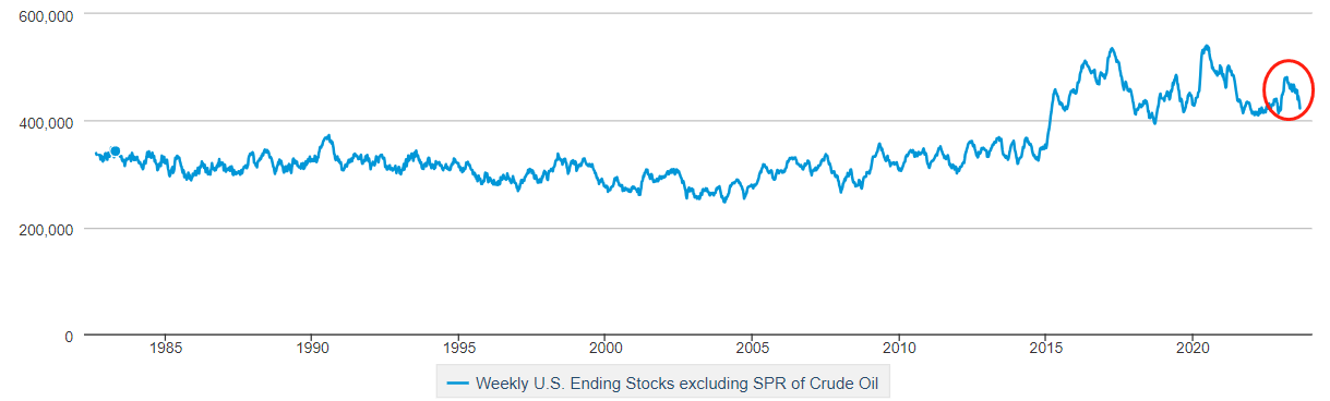 ATFX期市:今日23:00,美国能源信息署EIA将公布一系列原油库存数据,其中包括:至9月1日当周EIA原油库存,前值为减少1058.4万桶,预期值减少142.9万桶;至9月1日当周EIA战略石油储备库存,前值为59.4万桶;至9月1日当周EIA俄克拉荷马州库欣原油库存,前值减少150.4万桶。三项数据中,对原油价格影响最大的是EIA原油商业库存,其库存曲线如下图。