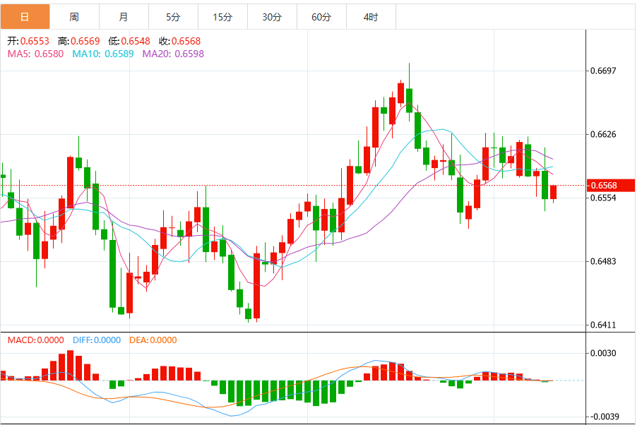 周五亚盘,澳元/美元徘徊于0.6568附近,澳元/美元在美元恢复盘中跌幅后回吐早期涨幅。