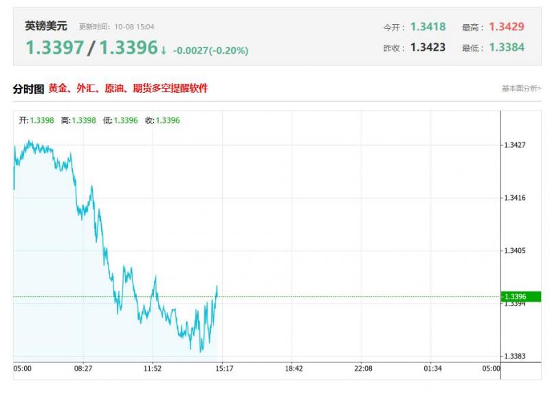 英镑兑美元今日汇率最高1.3397 ,最低1.3396,涨跌-0.0027 ,涨跌幅-0.20% 。