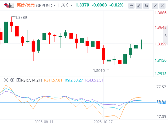 2025年英镑以1.2100低点开局后,全年呈现“先抑后扬”的V型走势。7月1日触及近四年高点1.3789后,虽在三季度受美元反弹压制,但年末在1.3400整数关口企稳,全年累计上涨约6.5%,展现韧性。