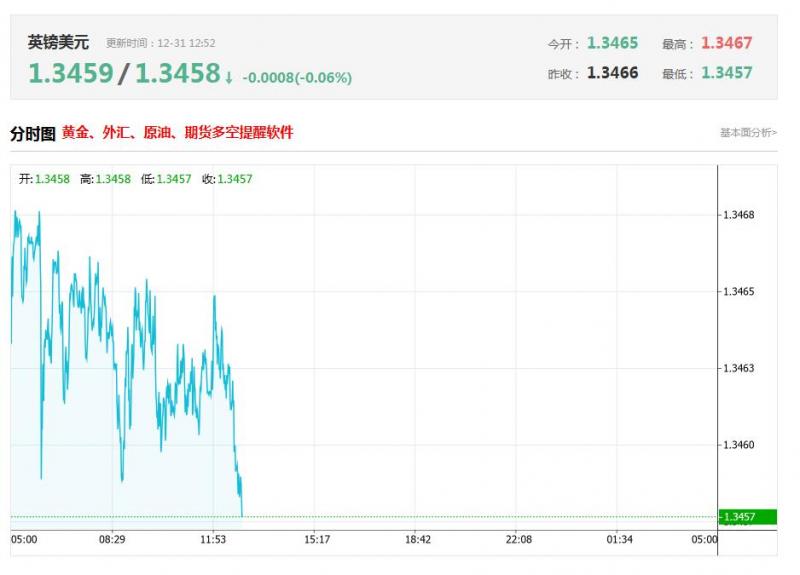 英镑兑美元今日汇率最高1.3459 ,最低1.3458 ,涨跌-0.0008 ,涨跌幅-0.06% 。