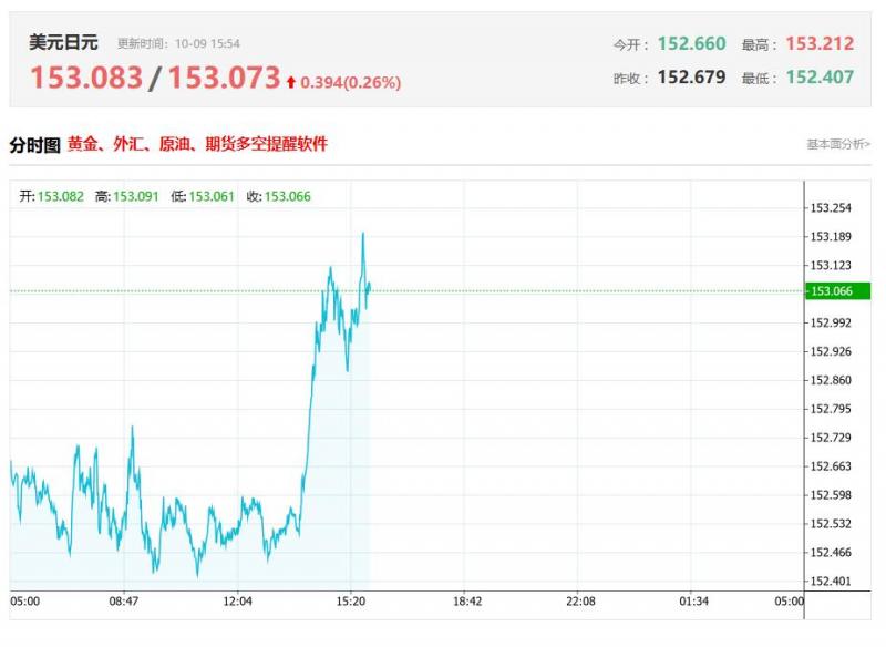 美元兑日元今日汇率最高153.083,最低153.073 ,涨跌0.394 ,涨跌幅0.26% 。