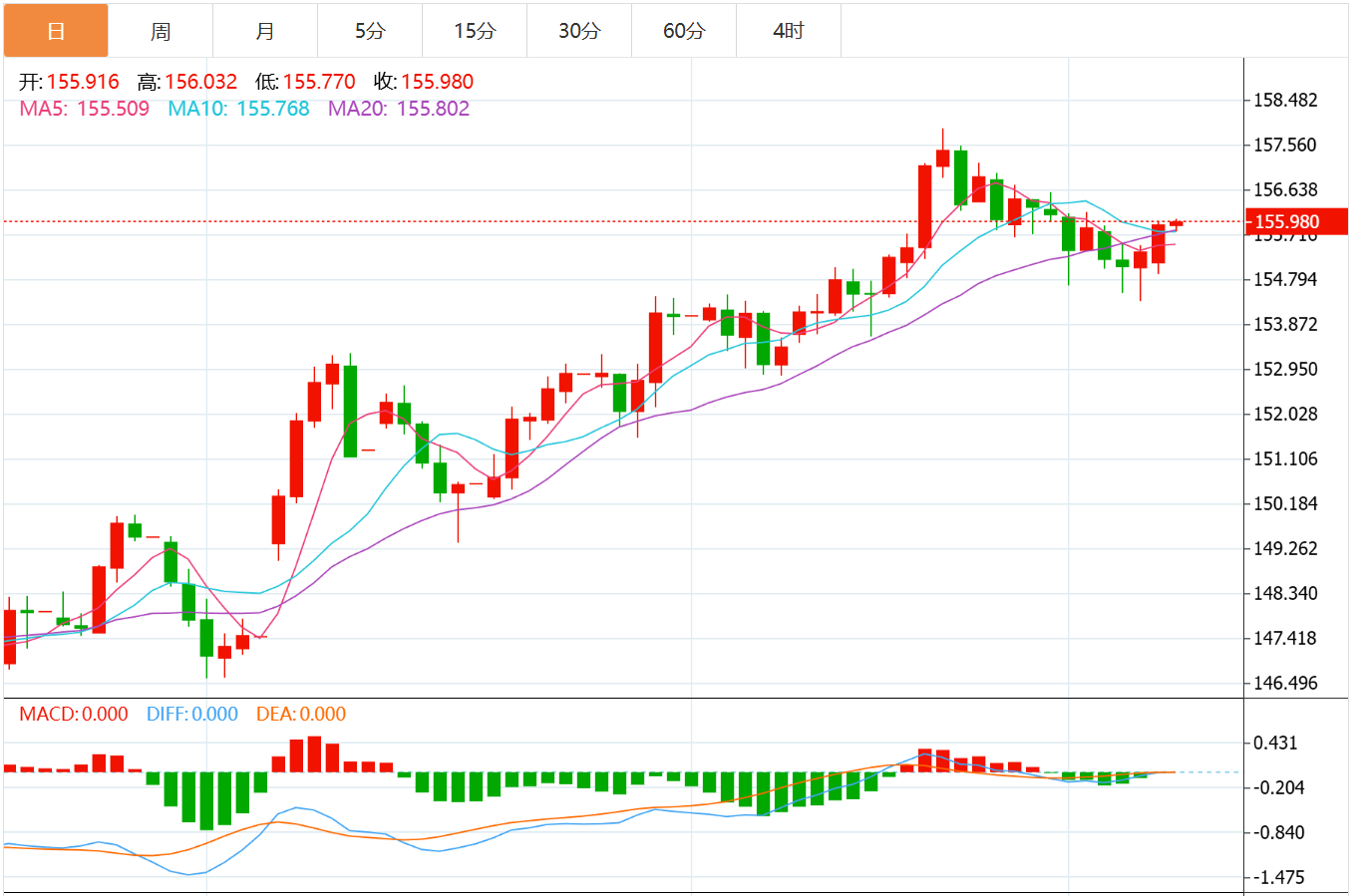 同时压力位为156.26和10日线,是日元调整结束继续升值的可能点位。