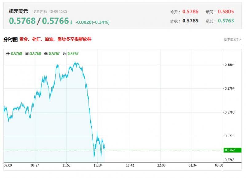 纽元兑美元今日汇率最高0.5768 ,最低0.5766 ,涨跌-0.0020 ,涨跌幅-0.34% 。