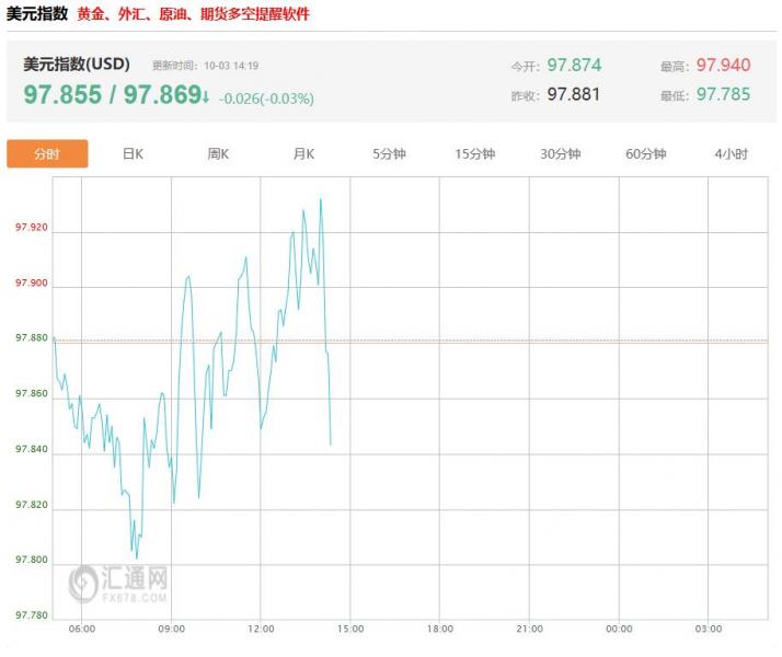 美元指数(DXY)承压下行,跌至97.522的近一周低点。这一走势源于市场消化美国疲软就业数据及持续政府停摆的影响。然而,早盘中段美元开启回升走势,尽管反弹背后并无明确基本面驱动因素,指数仍短暂转涨。