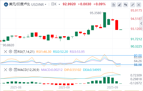 10月2日,周四亚洲交易时段,美元/印度卢比周三收盘,回调0.2%至88.83附近。周三,印度储备银行(RBI)宣布货币政策后,该货币对面临抛售压力。周四,印度货币市场因Dusshera和圣雄甘地·贾扬蒂(MahatmaGandhiJayanti)而休市。