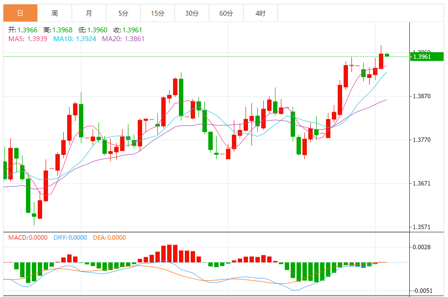 周五,美元/加元徘徊于1.3962下方,现交投于1.3961附近,跌幅0.04%。