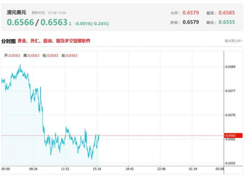 周三盘中,澳元/美元 报0.6561, 跌幅0.24%.