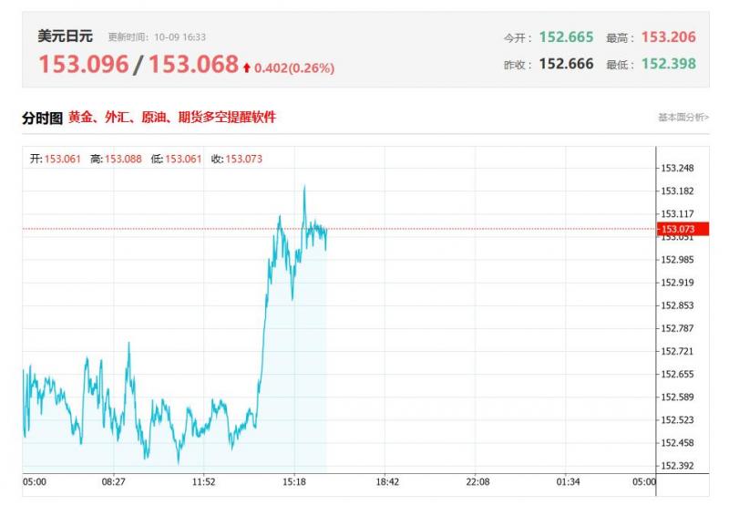 周四盘中,美元/日元报152.45, 涨幅0.26%.