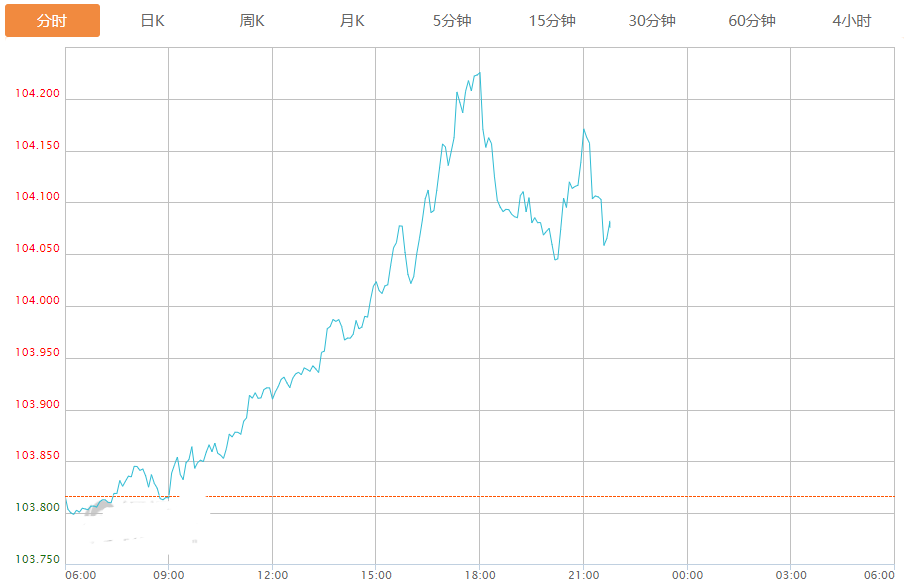 截至目前,美元指数上涨0.25%,报104.077。