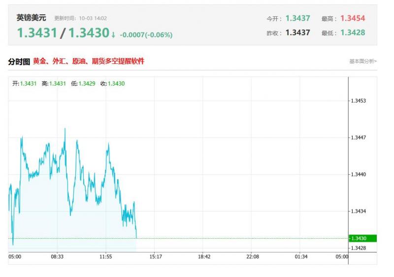 截至目前,英镑/美元下跌0.06%,报1.3430。