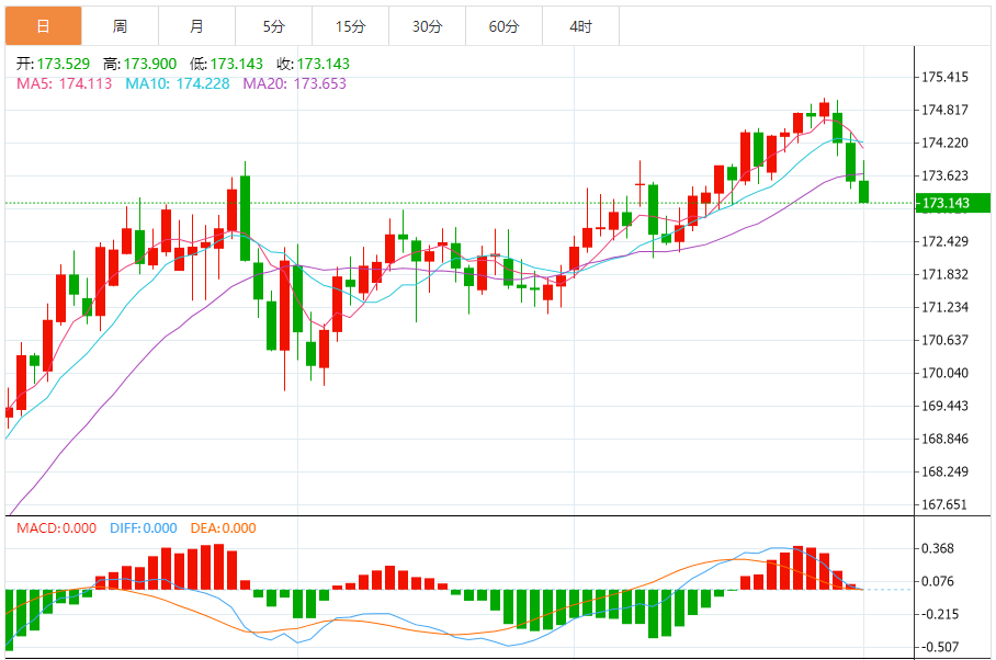 若承受新的下行压力并跌破当前支撑位,将迫使其恢复调整性下行,预计将直接触及172.60和172.15。