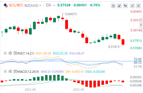 10月8日,周三亚洲早盘,纽元/美元货币对连续第二天吸引激进抛售,并在亚洲时段跌至4月11日以来的最低水平,低于0.5700左右。