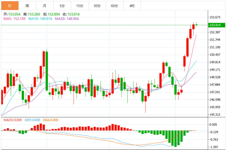 周五亚盘,美元/日元在早盘亚洲时段延续涨势,升至约153.05,受到美元(USD)走强的支撑。 由于美国政府停摆缺乏进展,美元兑日元(JPY)升至自2月份以来的最高水平。