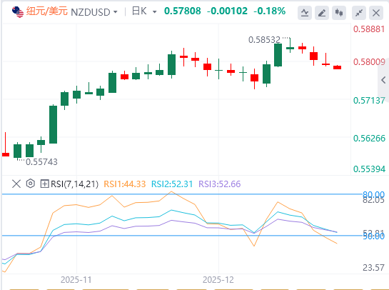 12月31日,周三亚市盘中,纽元/美元货币对在0.5785附近保持下跌。尽管中国经济数据乐观,纽元(NZD)兑美元(USD)依然走弱。交易员们正准备迎接周三晚些时候公布的美国首次失业救济申请报告。