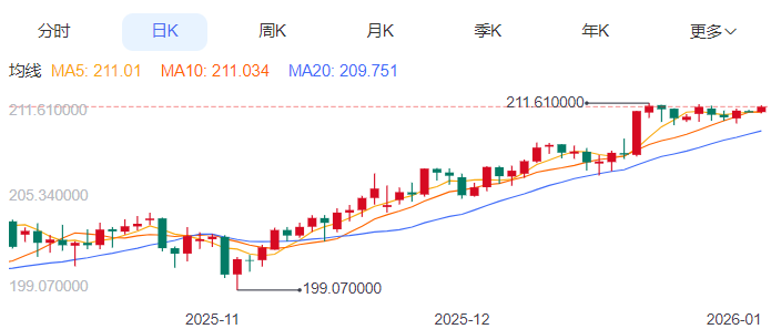 周五,英镑/日元上涨0.14%至211.38附近。