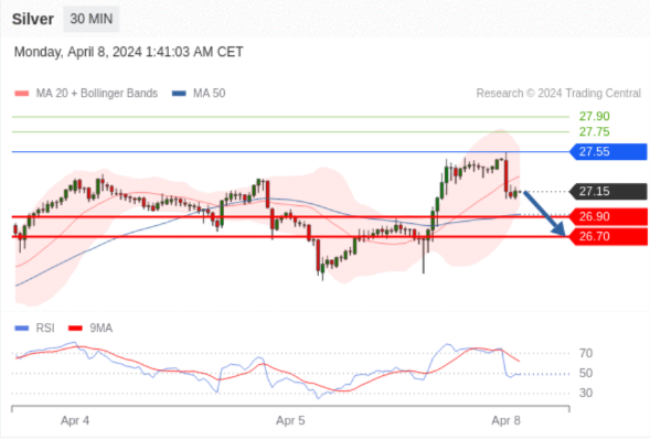 在 27.55 之下,看跌,目标价位为 26.90 ,然后为 26.70 。