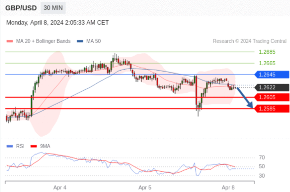 在 1.2645 之下,看跌,目标价位为 1.2605 ,然后为 1.2585 。