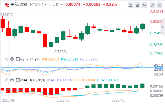 10月8日,美元/瑞郎货币对在周三欧盘重新回到0.8010附近的月度高点。尽管美国政府关门进入第二周,但随着美元(USD)继续上涨,瑞士法郎货币对走强。