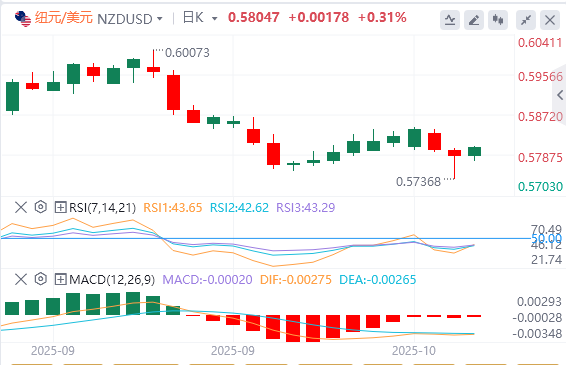 10月9日,周四欧市初盘,纽元/美元货币对在前一天从0.5735区域(即4月11日以来的最低水平)的良好反弹基础上,并在周四亚洲时段获得一些积极牵引力。在美元温和疲软的情况下,现货价格回升至0.5800关口上方,尽管在新西兰储备银行(RBNZ)鸽派前景之后,上行潜力似乎有限。