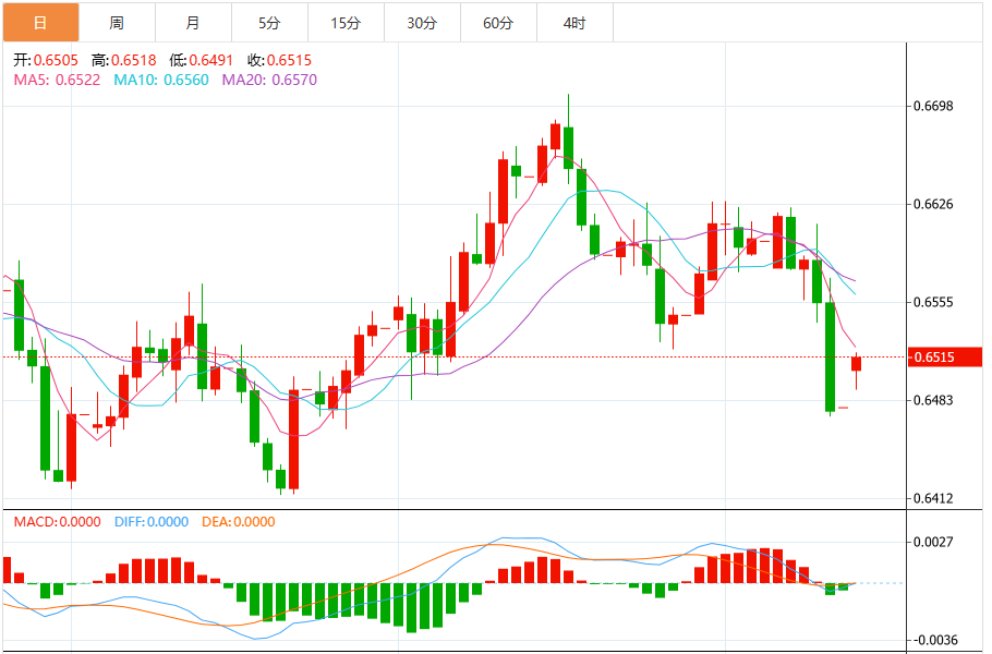 技术分析:澳元保持在0.6500以上,目标九日EMA阻力位