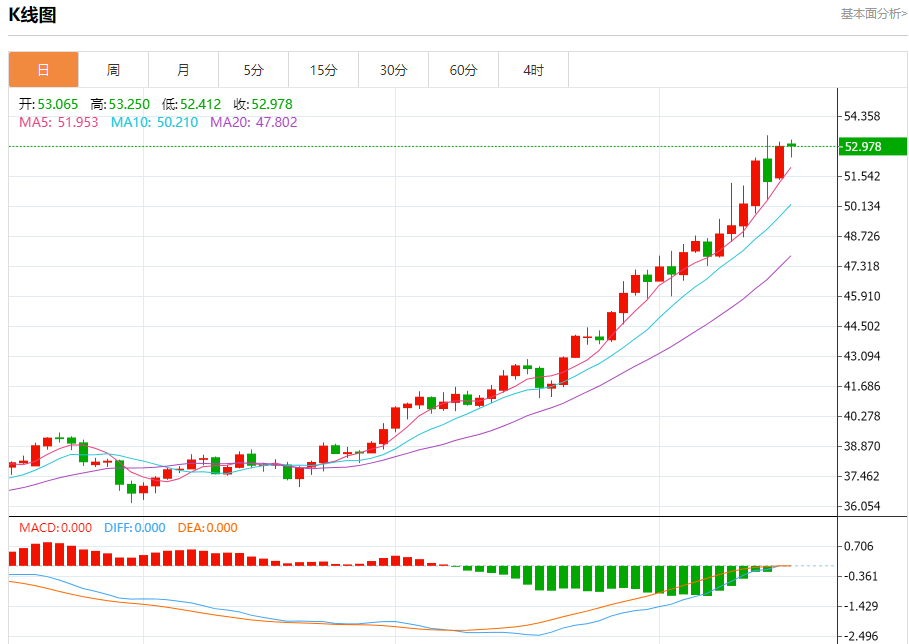 现货白银:截止北京时间20:23,现货白银上涨,现报52.988,涨幅0.05%。纽市盘前,(白银)价格在最后一个交易日上涨,此前在相对强度指标上卸载了超买条件,为近期实现更多收益开辟了道路,准备攻击53.50美元的关键阻力,其支撑是其在EMA50上方的连续交易和沿着次要趋势线的交易。