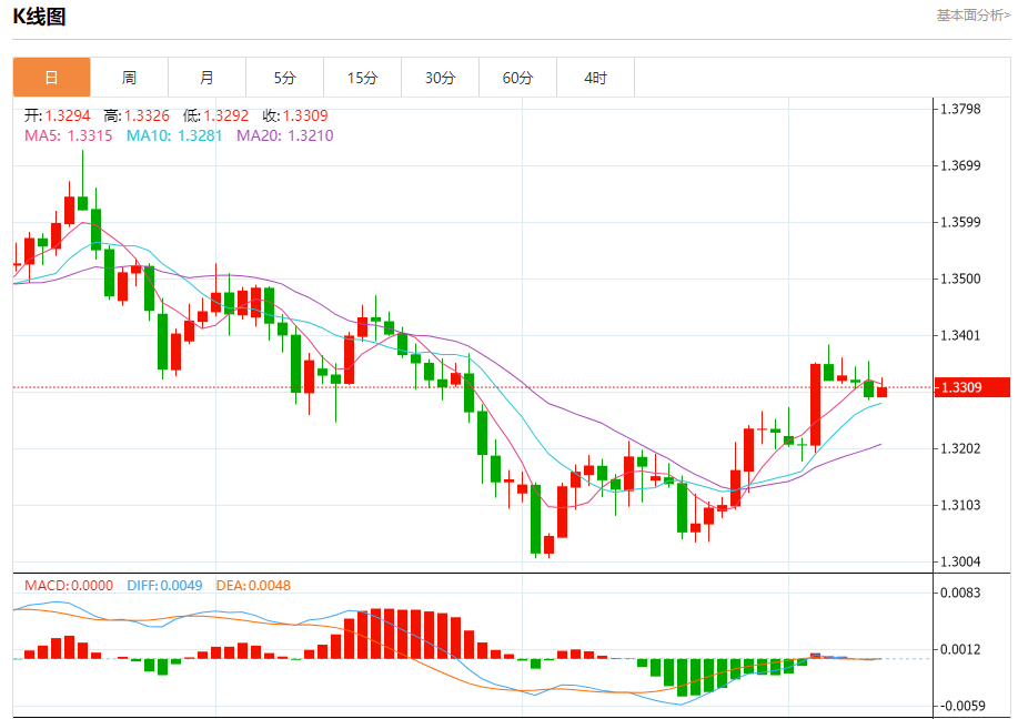 英镑/美元:截止北京时间21:20,英镑/美元上涨,现报1.3310,涨幅0.11%。纽市盘前,GBPUSD在盘中的最后一次交易中下跌,尽管达到了超卖水平,但在相对强度指标上出现了负面信号,试图寻找更高的低点,以获得看涨动力,帮助其恢复并再次上涨,依靠EMA50的支持,这加强了短期看涨轨道的优势和稳定性,特别是其沿着趋势线交易。