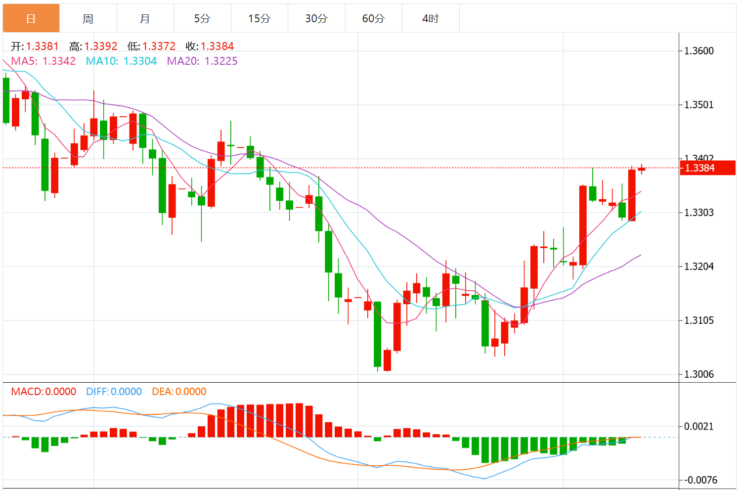 英镑:截止发稿,英镑/美元徘徊于1.3384附近,英镑/美元在周三重新回到看涨一方。美联储如许多投资者预期的那样,进行了第三次连续降息。市场对美联储的谨慎语气不以为然,押注进一步降息。英镑流动性在下周英国数据公布之前仍然与广泛市场动态紧密相连。从日线图来看,英镑/美元正处于 1.3250–1.3350 区间整理结构。价格在下方 1.3250 附近获得支撑,上方 1.3350–1.3380 区域形成压力带。短期均线走平,MACD 动能柱接近零轴,显示多空力量均衡。若突破上方1.3350,将有望测试 1.3400 阶段阻力;若跌破 1.3250,则可能回调至 1.3180–1.3200 支撑区域。整体技术面提示汇价仍以区间震荡为主,需关注政策导向催化突破。