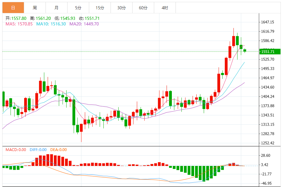 今日最新铂金行情:1553.60