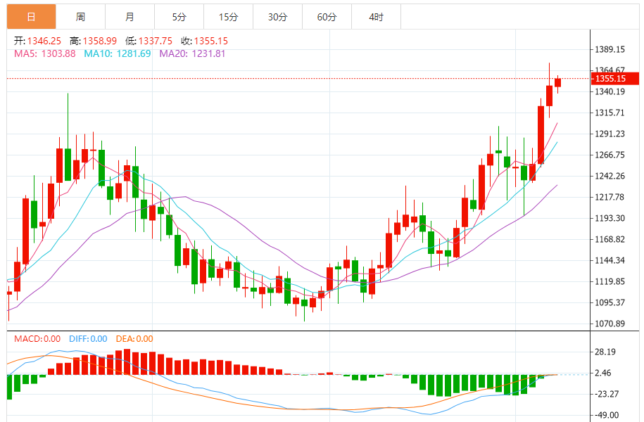 今日最新钯金行情:1353.09