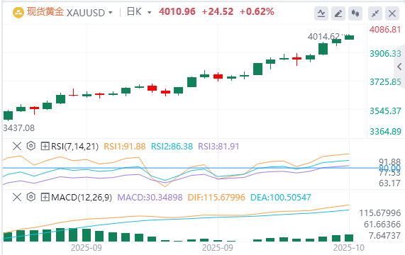 隔夜公布的美国9月纽约联储1年通胀预期升至3.38%,高于前值3.20%,显示消费者对中期物价上涨的担忧持续加剧。这一数据强化了市场对通胀黏性的预期,而黄金作为传统抗通胀资产,在高通胀环境下吸引力自然提升。与此同时,明尼阿波利斯联储主席卡什卡利指出“经济数据显示出一些滞胀迹象”,这一表态尤为关键。滞胀预期——即经济增长放缓与通胀居高不下的组合——将极大支撑金价:一方面,高通胀削弱法定货币购买力,推动资金转向黄金保值;另一方面,经济疲软又会限制美联储继续激进加息的空间,实际利率有望保持低位甚至下行,大幅降低了持有黄金的机会成本。
