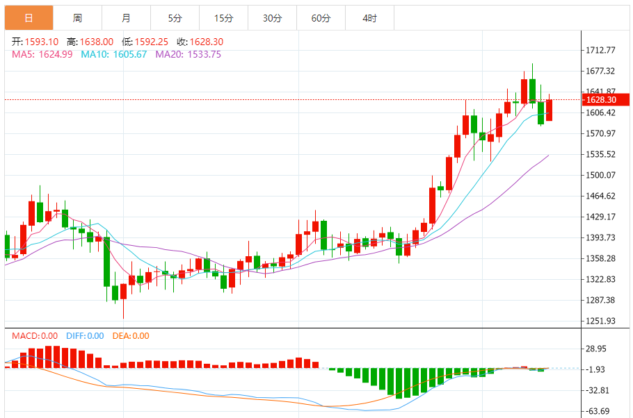 今日最新铂金行情:1626.10