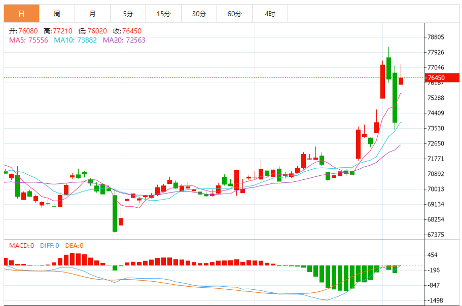 今日最新铜行情:76430