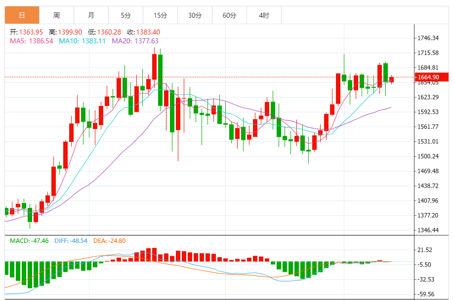 今日最新铂金行情:1664.90