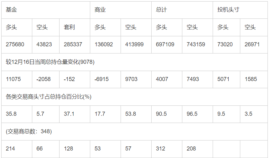 截止12月23日当周COMEX(纽约商品期货交易所)黄金期货和期权分类持仓报告: