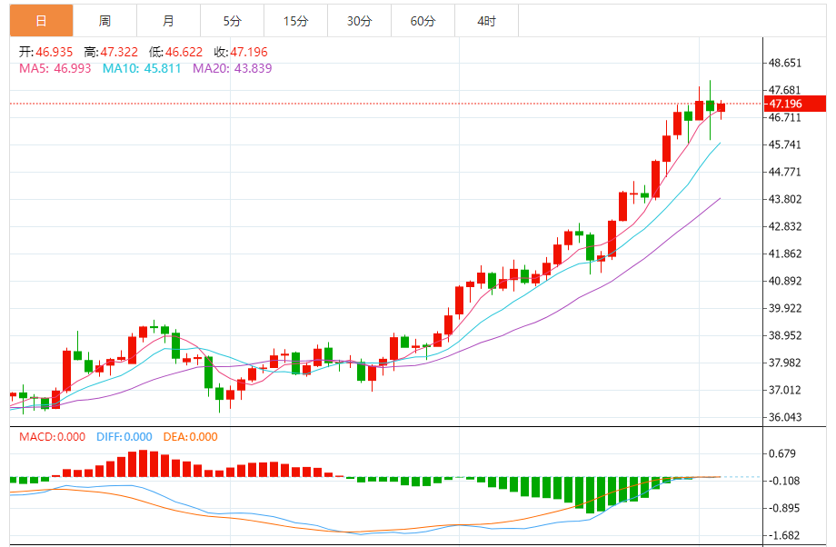 周五(10月3日),现货白银目前位于47.196美元/盎司附近,涨幅为0.50%。