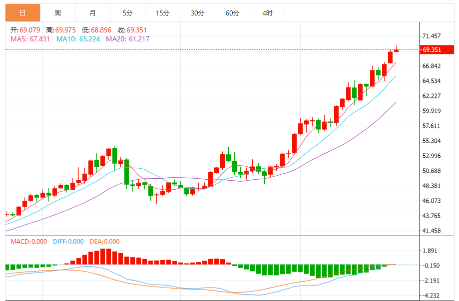 周二(12月23日),现货白银目前位于69.366美元/盎司附近,涨幅为0.50%。
