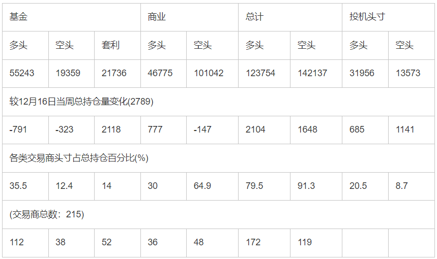 截止12月23日当周COMEX(纽约商品期货交易所)白银期货分类持仓报告: