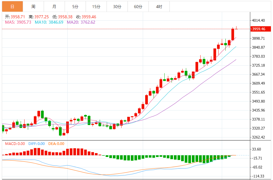 周二(10月7日),国际金价延续涨势,现货黄金价格一度飙升至3976.06美元/盎司的历史高位,而美国期金更是接近触及4000美元关口,盘中最高达到3999美元/盎司,美联储降息预期升温、全球政治不确定性加剧以及央行持续购买等多重因素共同推动金价上涨。