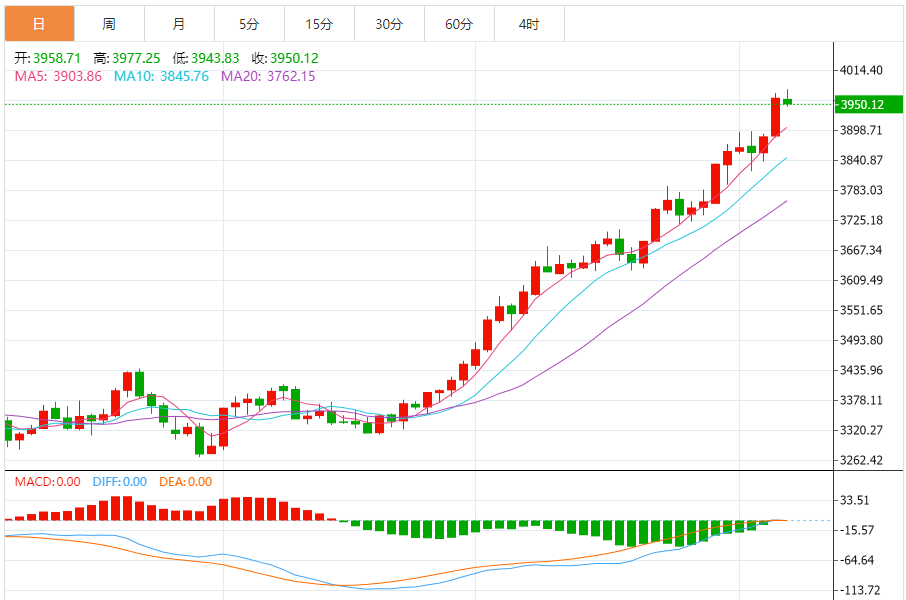 周二(10月7日),现货黄金目前位于3950.45美元/盎司附近,跌幅为0.27%。