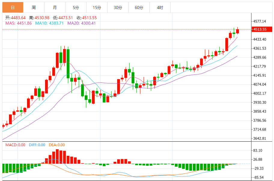 周五(12月26日),现货黄金目前位于4515.68美元/盎司附近,涨幅为0.81%。