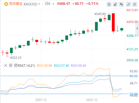 现货黄金从前一交易日的暴跌中反弹,一度重回4400美元关口,但美盘持续回吐日内涨幅,截至目前,黄金报价4369.47。