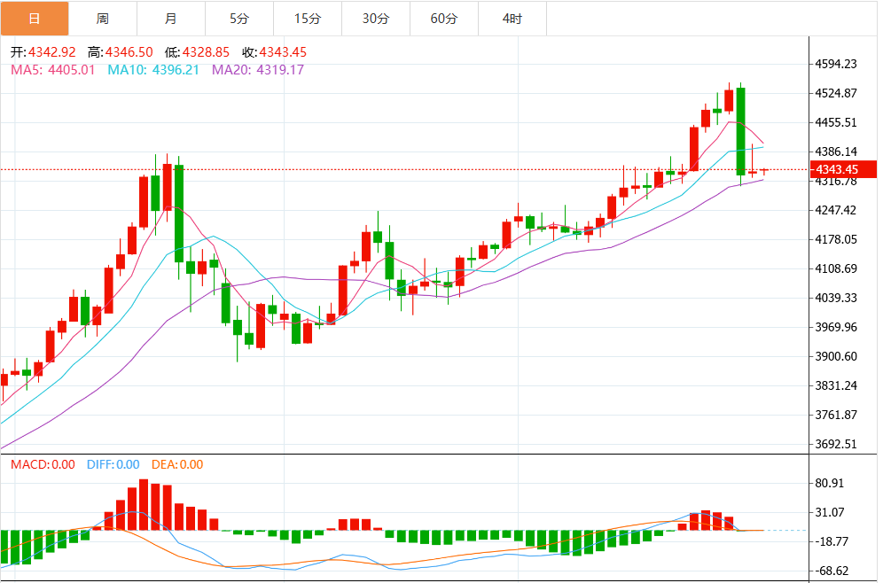 需要关注的直接阻力位是布林带的上边界4520美元。 若果断突破该水平,可能会触发对历史高点4550美元的重新测试,并朝向4600美元的心理关口。
