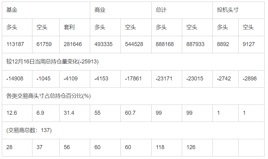 截止12月23日当周洲际交易所(欧洲)原油期货和期权分类持仓报告: