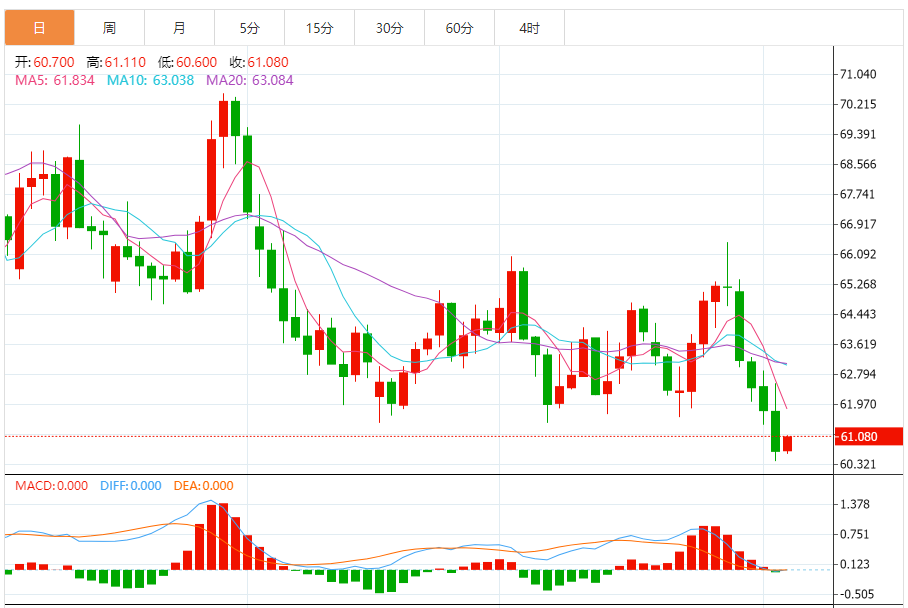 周五(10月3日),美原油价格交投于61.070美元/桶附近,涨幅为0.99%。