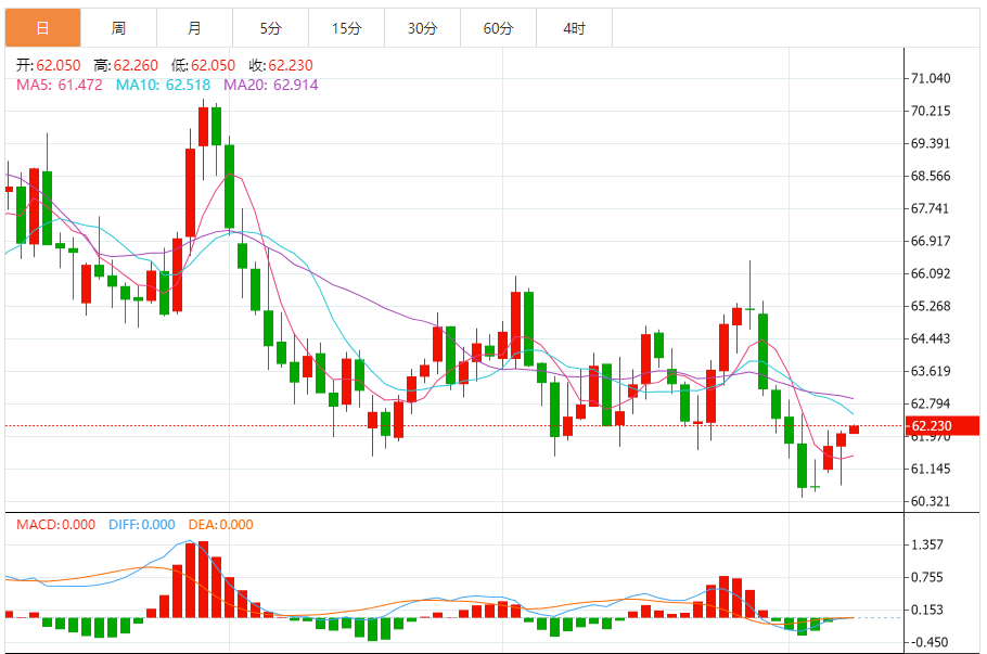 WTI原油期货(美国基准油价)在报告公布后上涨至62.04美元/桶,较盘中结算价61.73美元小幅上扬约0.5%。