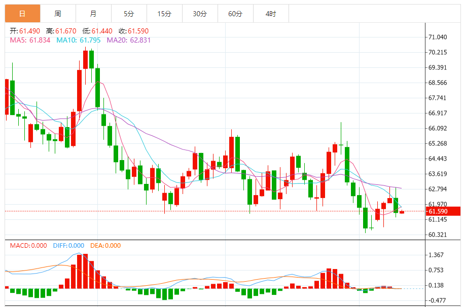 周五,美国西德克萨斯中质原油(WTI)延续回调态势,交投于61.20美元/桶。据市场调查显示,以色列与哈马斯正式签署停火协议,标志着中东地区局势暂时缓和。